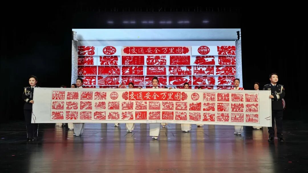 整场活动紧扣“文明交通 礼行天下”主题,在舞蹈《礼赞》中拉开帷幕,瞬间点燃现场氛围。绥德大队警嫂带来的《平安剪纸秀行路有规章》,将榆林非遗剪纸艺术、陕北民歌与交通安全知识巧妙融合,生动诠释了出行守规的内涵;情景剧《生命没有如果》以真实交通案例为蓝本,通过沉浸式表演再现忽视安全的惨痛代价,字字叩心、句句警人,为现场观众敲响交通安全警钟;歌舞《万家团圆颂平安》则以悠扬歌声与优美舞姿,传递出“平安出行、阖家团圆”的美好期盼,温暖了在场每一位观众的心。