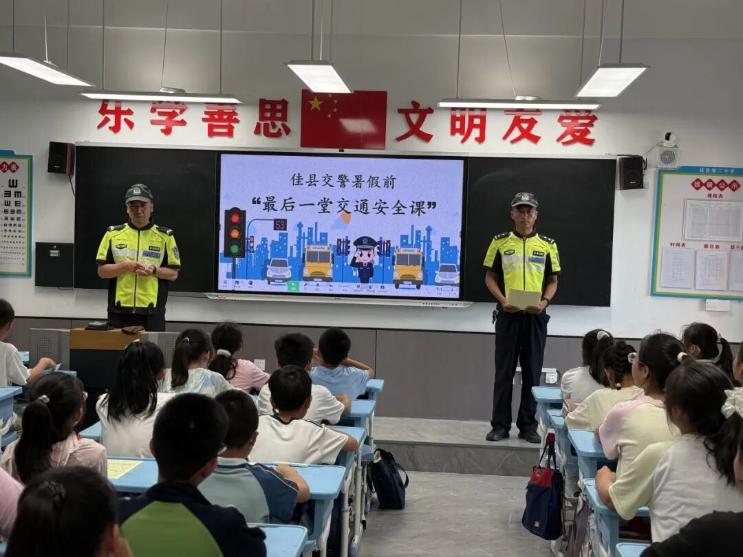 佳县公安交警通过面对面讲解、现场答疑、发放资料等形式,向辖区学校学生全面普及交通安全知识,为学生们带来暑假前最后一堂交通安全课。