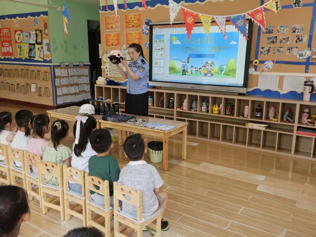 清涧公安交警走进辖区第四幼儿园,通过头盔佩戴模拟体验、交通安全知识现场宣讲等形式,为同学们上好暑假前“最后一课”。